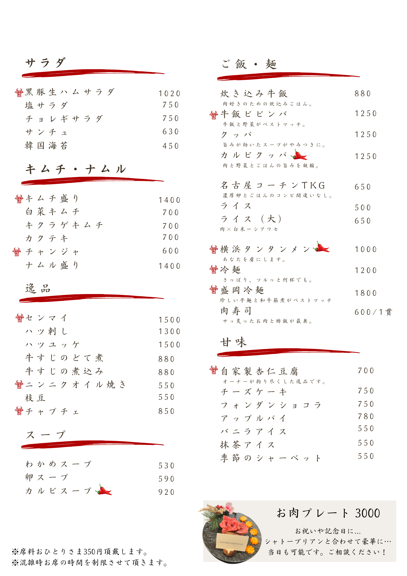 (お肉がなくなった場合早く閉店する可能性がございます)